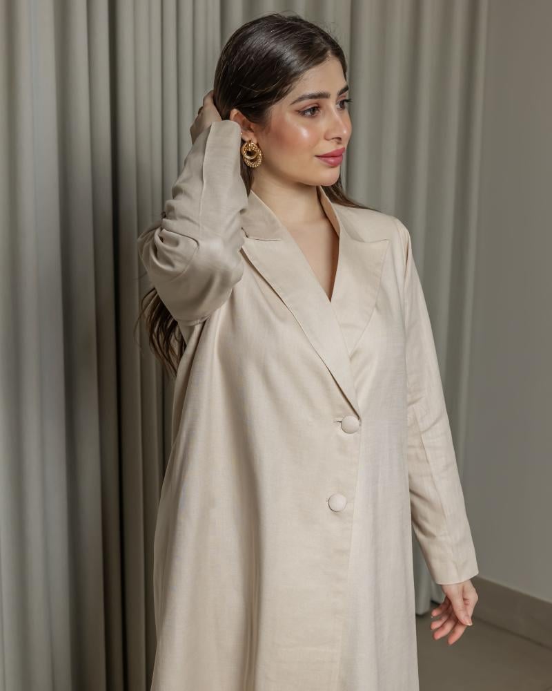 🤍 عباية بيج كلاسيكية – لمسة فخامة من Earth Abayaارتقي بإطلالتك مع هذه العباية البيج ذات التصميم الكلاسيكي الانسيابي، المصنوعة من قماش فاخر مستورد من اليابان، لتمنحك مظهرًا عمليًا أنيقًا يناسب الإطلالات اليومية والاجتماعات الرسمية بكل ثقة.